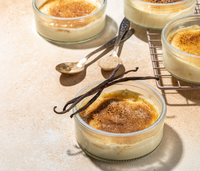 Serveer direct na het karameliseren om te genieten van het contrast tussen de koude vla en de warme gekarameliseerde korst.