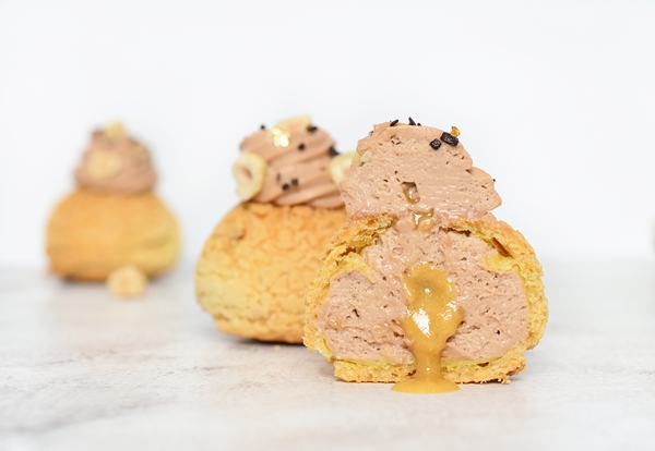 Week de gelatine 5 minuten in koud water. Combineer de room A en chocolade-hazelnootpasta in een kleine steelpan en verwarm al roerend. Haal van het vuur, voeg de gezeefde gelatine toe en roer tot de gelatine smelt.