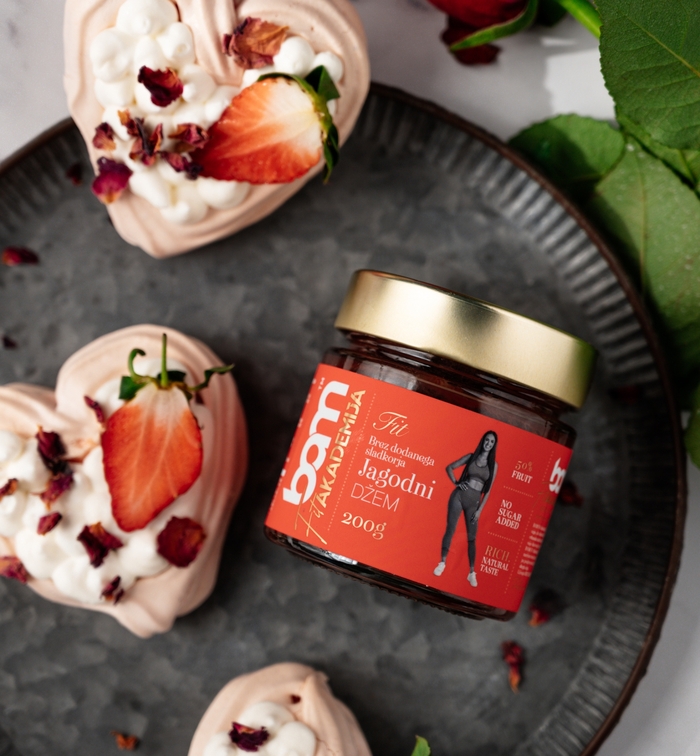 Klop de slagroom op. Verdeel de aardbeienjam en slagroom over de afgekoelde pavlova''s. Werk af met een stukje verse aardbei en garneer met gedroogde rozenblaadjes.