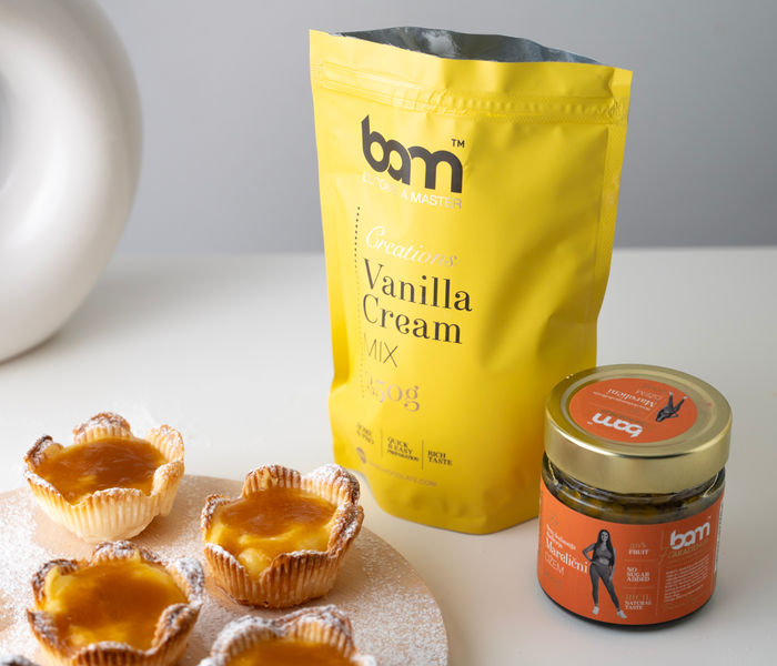 @bamchocolate.com ? Vanille madeliefjes met Fit abrikozenjam ? Een lentetraktatie voor alle liefhebbers van snelle en heerlijke desserts. Alles wat je nodig hebt is bladerdeeg, BAM Vanille Crème Mix en BAM FIT Abrikozenjam zonder toegevoegde suiker. Als je wilt, kun je de jam afwerken met vers fruit of, voor zoetekauwen, met een van de BAM-spreads. Ingrediënten (8 madeliefjes): - Bladerdeeg - 70 g BAM vanillecrèmemix - 2 dl melk - BAM Fit abrikozenjam - Poedersuiker om te bestrooien Werkwijze: Snijd het bladerdeeg in grote bloemvormen. Leg de rozetten op een met bakpapier beklede bakplaat en prik de bodems in met een vork. Verzwaar ze met rijst of bakpapier en gedroogde bonen om hun vorm te behouden tijdens het bakken. Bak ze 15-20 minuten in een op 200 graden voorverwarmde oven, tot ze goudbruin zijn. Bereid ondertussen de vanilleroom door 70 g BAM vanilleroommix te mengen met 2 dl melk. Vul de afgekoelde margrieten met de bereide vanillecrème. Beleg elk madeliefje met een theelepel BAM Fit abrikozenjam. Bestrooi voor het serveren met poedersuiker voor een mooiere look. Geniet van een lichte en heerlijke traktatie! #bamchocolade #springdessert #vanillecreme #apricotjam